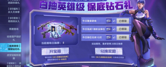 活动期间一共可以获得20张白抽券。获得白抽券之后直接开宝箱就完事了,海量期限武器和钻石等着大家,当然欧皇玩家是可以直接获得“永久英雄级自选券”的。