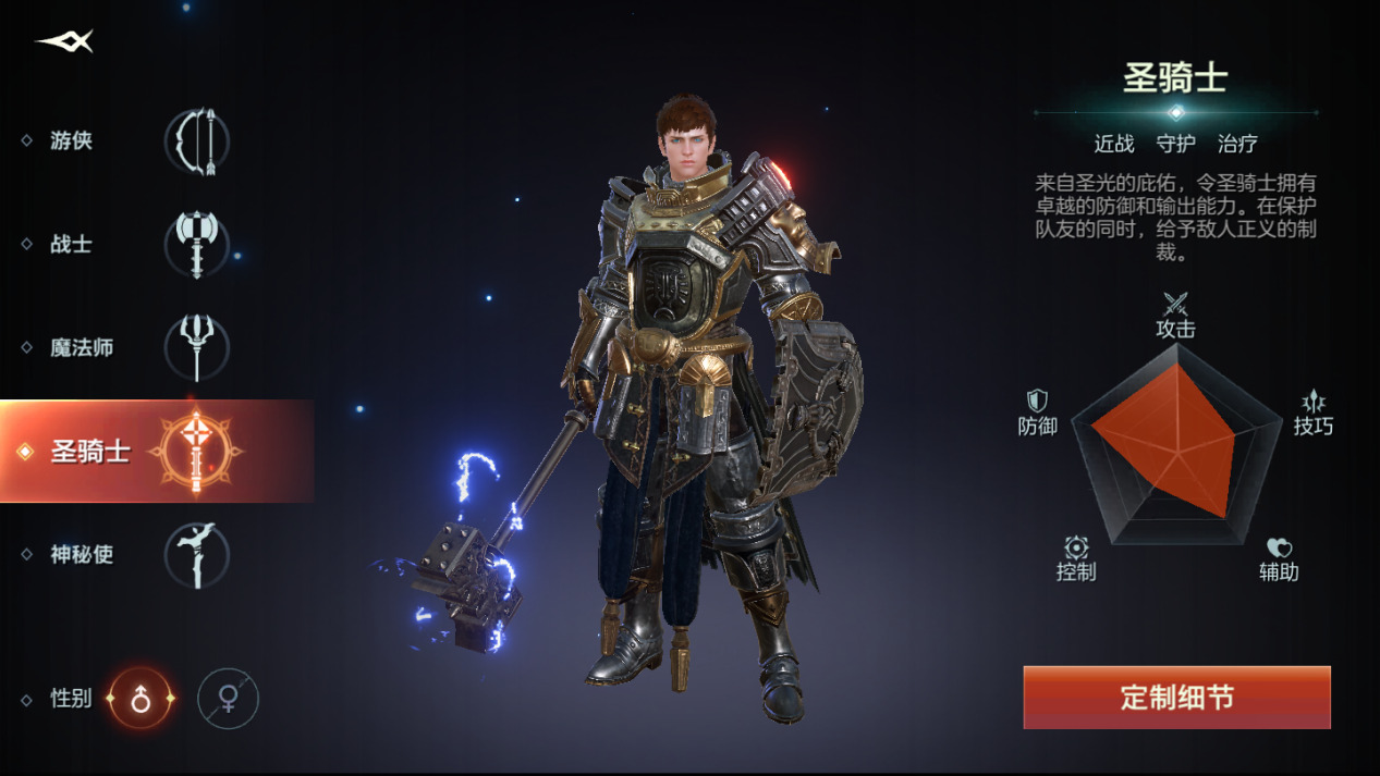 在《余烬风暴》的游戏中,圣骑士是自由与光芒的化身,他们全身铠甲,手持短锤与盾牌,在团队中充当自由人的角色,可参与进攻,可保护队友,同时他们的圣光之力还可以给予队友血量的恢复,有效的保障团队的存活率。