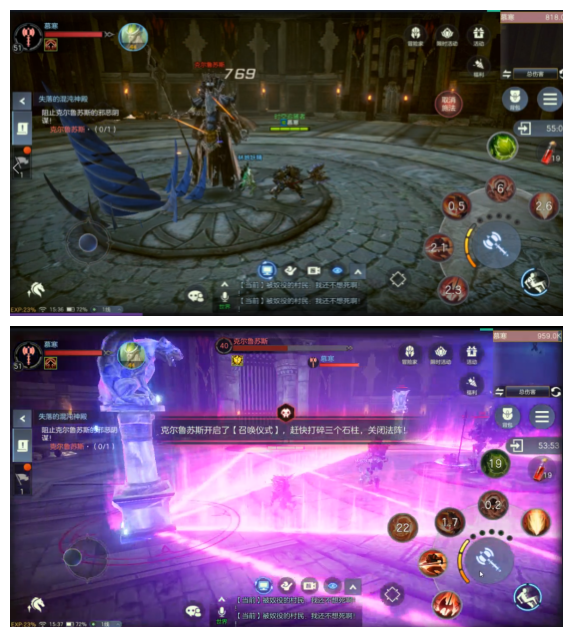 所以一旦克尔鲁苏斯开启召唤仪式技能,我们的任务是,先打掉三根石柱,然后再消灭召唤物,召唤物的多少取决于石柱被打碎的时间。最后把召唤物和克尔鲁苏斯聚到一起,消灭之即可。