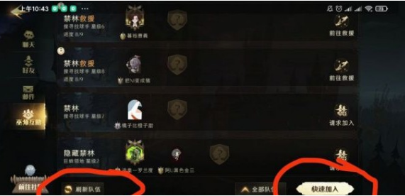 2、然后可以看到很多玩家发布的救援申请,点击确认后,就可以一起和其他巫师进行禁林探险了。