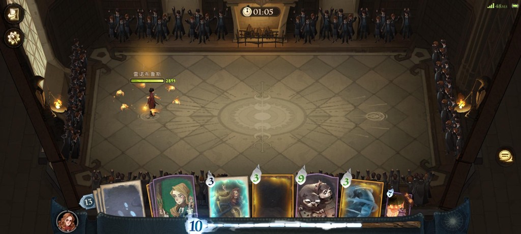 注意,我之前用的是触发赫敏回响效果的3费雷鸟,但闪回咒复制的卡不算回响效果,按6+1费计算了复制卡的费用。不过,如果你的手牌费用最高的就是雷鸟,在使用3费雷鸟后,又触发了回响效果,你得到的复制卡是4费雷鸟。所以,7费打出两发雷鸟是可以滴。