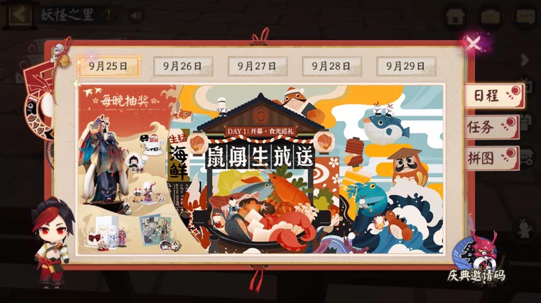 大人们与庭院内Q版晴明进行对话,即可进入「妖怪之里」,参与生贺周的各项活动!