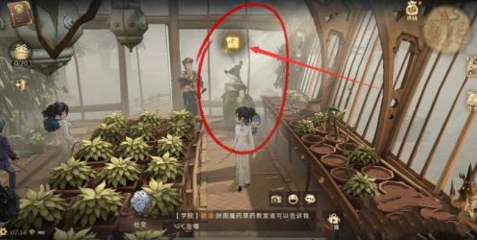 点击地图进入草药课教室,在身后可以看到斯普劳特教授头上的拼图标志,点击对话就可以获得拼图了。
