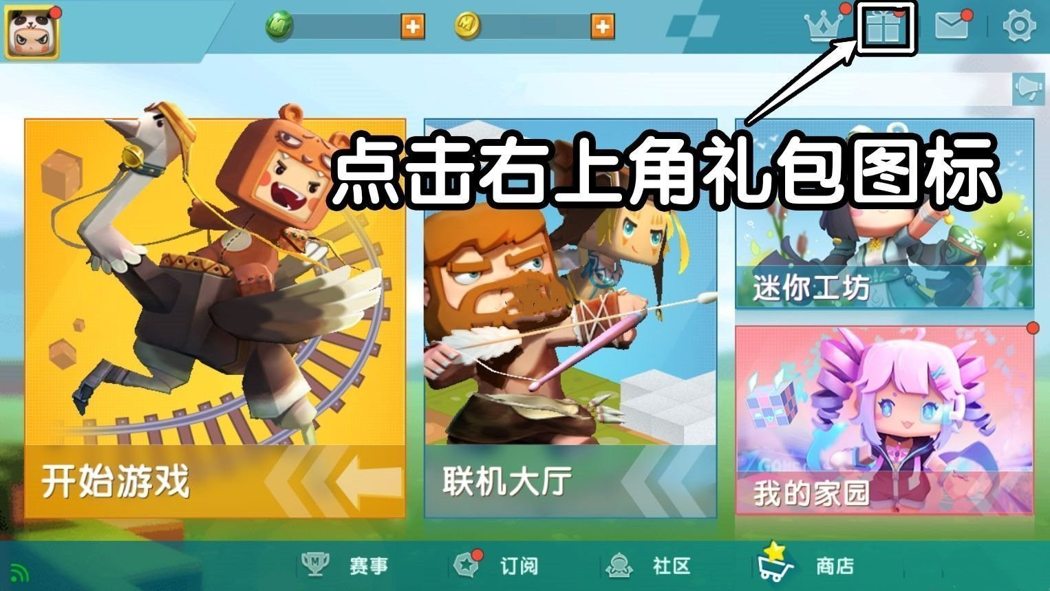 打开迷你世界,点击右上角的礼物盒,点击活动选项,点击激活码礼包按钮即可兑换!