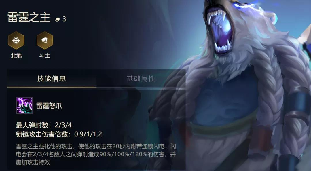 雷霆之主开启技能后,普攻可弹射造成群体普攻伤害,输出极高,一次普攻敌方4枚棋子血量掉一大截,更关键点弹射也可施加攻击特效。