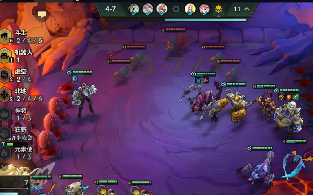 4-1就要升级7人口,开始大搜卡找齐6斗+2北地阵容,北地棋子可选冰川骑士,如果有灵鸟毕方也可直接替换收益更高。