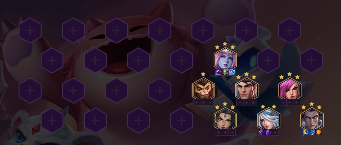 金铲铲之战仙灵蜘蛛阵容是由3换形2斗士2海克斯2狂野2仙灵2游侠组成的,蛛后主c,所以对于她的装备要求是很高的,今天带来了这个阵容的英雄、阵容装备和站位的详细介