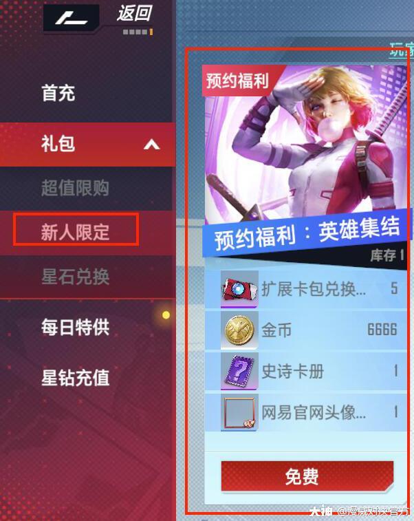 进入商城找到 礼包 下的 新人限定,如图
