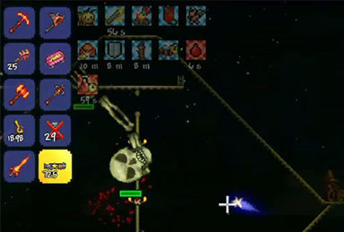 击败服装商能得到“红帽”,击败骷髅王得到5个金币,另外不用担心服装商会死亡,因为白天之后他就会复活,我们可以利用这一点刷钱。