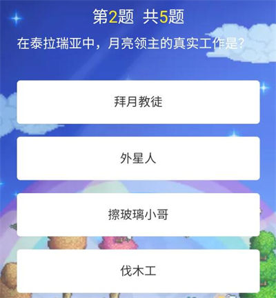 泰拉瑞亚泰拉人浓度测试答案是什么?泰拉瑞亚已经正式上线,公众号有一个小活动,参与泰拉人浓度测试的玩家可以得到小礼物。下面带来泰拉人浓度测试答案一览,希望对小伙伴们有所帮助。