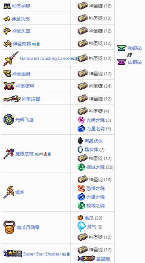泰拉瑞亚神圣锭可以合成什么?“神圣锭”是游戏中非常珍贵的一种合成材料,只有击败了机械系BOSS之后才能获得。下面带来泰拉瑞亚神圣锭合成物品汇总,希望对各位小伙伴们有所帮助。