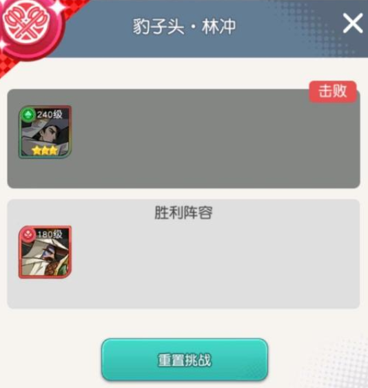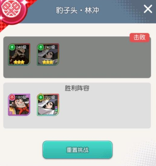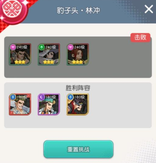 这关对英雄练度要求高,因为林冲切后排,所以对品质跟装备都有要求。不然顶不了几下就被切完了。