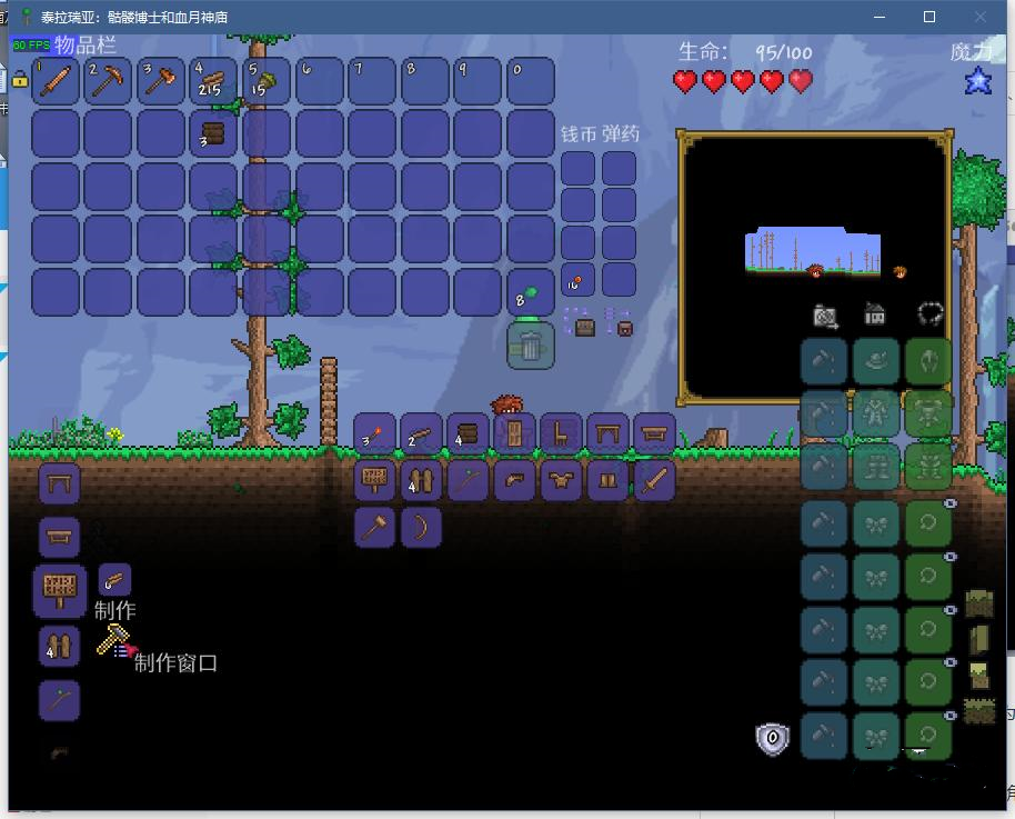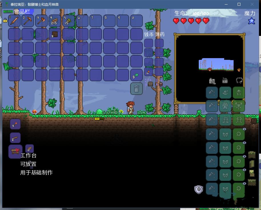 2、获得一定数量后,我们点击ESC出现左边制作栏选项 我们制作一个工作台 将工作台放置好,使角色靠近工作台,打开制作栏(如图,点击制作窗口可以展开制作项目;