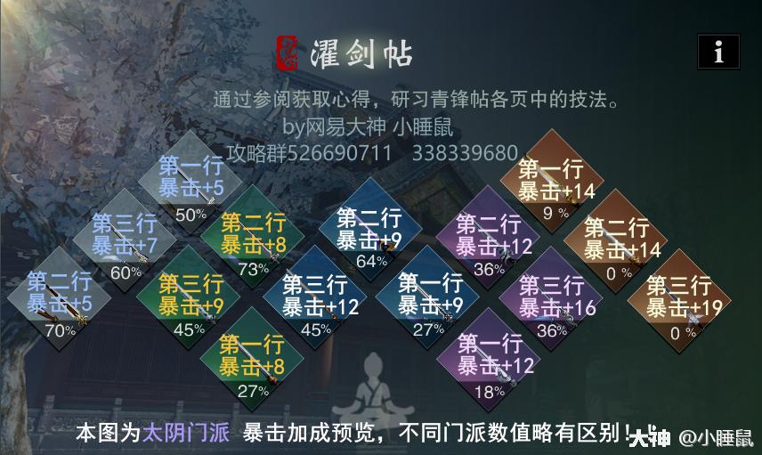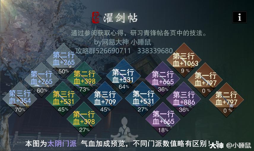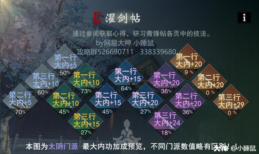 小知识:不同门派属性数值略有区别,太阴三尺没有最小内功。八大门派的三尺青峰是都可以点的,记住了!!所有门派的三尺青峰都可以解锁!!!!