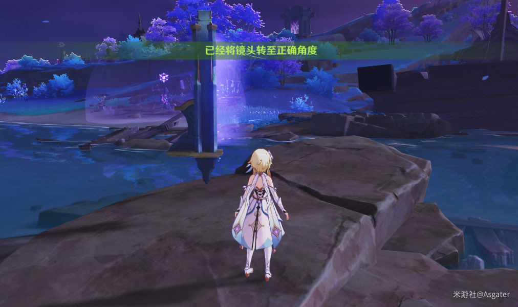 ③抵达这处植物的位置之后,即为正确拍照地点,将视角转向至西方即可: