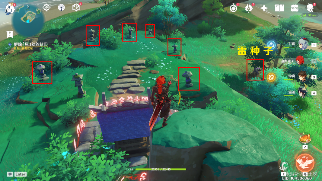 前往「尾」之所在的地方,阅读石碑,然后找到雷种子。