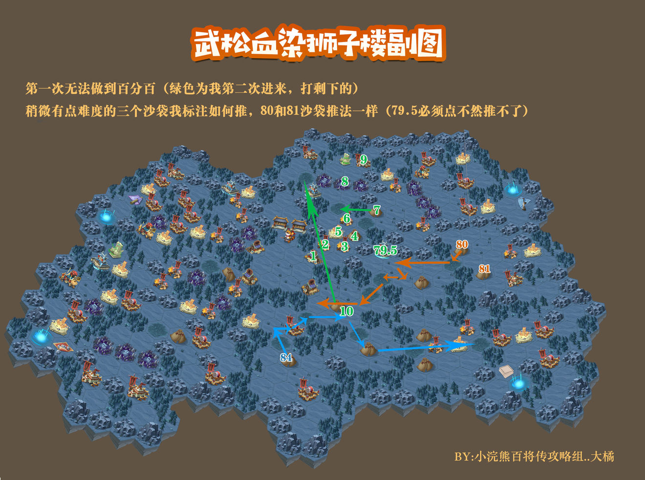 稍微有点难度的三个沙袋标注了如何推,80和81沙袋推法一样,79.5必须点不然推不了。