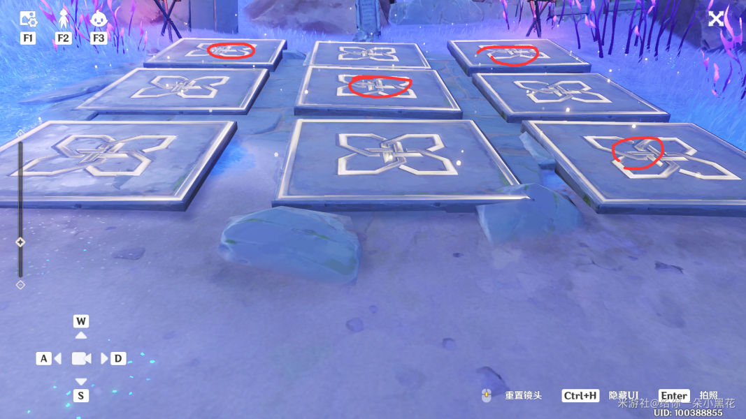 找到三张对照图,踩对照图没亮的石块
