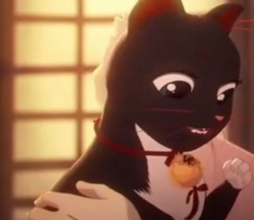猫咪的名字并未直接说明,在游戏中也没有提到,我们只能去CG里面找了;CG看下来也没人叫猫咪的名字,不过我们可以从画面中捕捉到一点信息,有一个镜头是老奶奶给小猫咪戴上小铃铛,铃铛上写着一个“缘”字