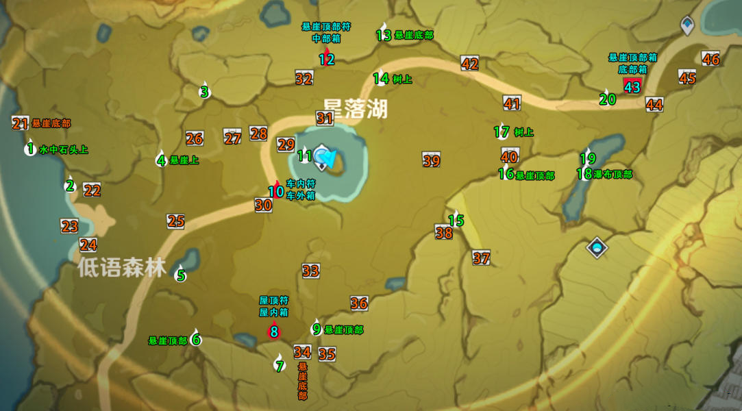 按照上面得标点位置一个个的去寻找很快就能够找完,大家还没有开始寻找的玩家们快去对照攻略去收集吧。
