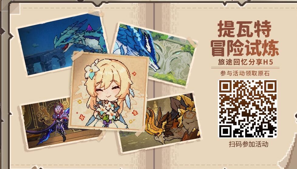 体验「提瓦特冒险试炼」并完成分享,可获得相应原石兑换码(限量300万份)。