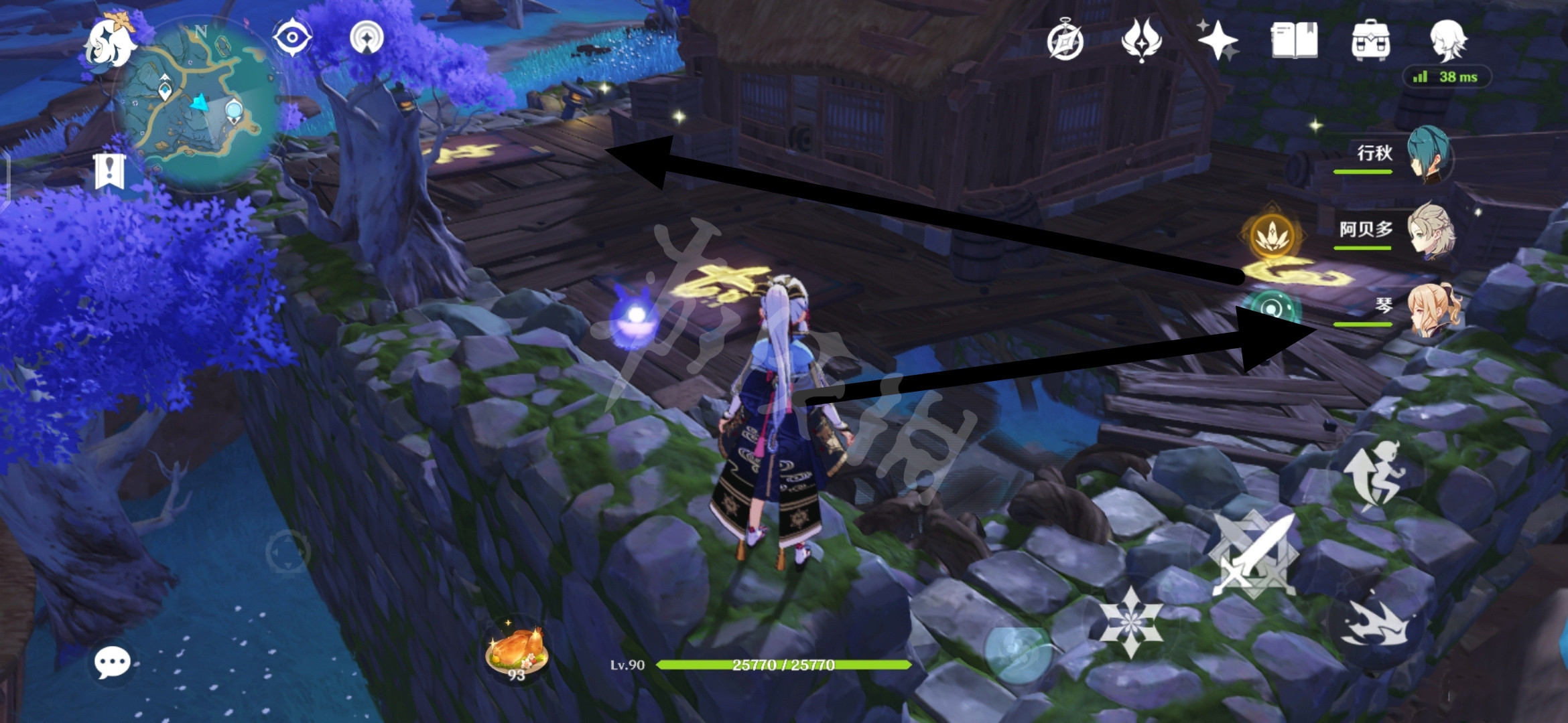 然后根据NPC提示来到房屋前,踩方块解密如下。