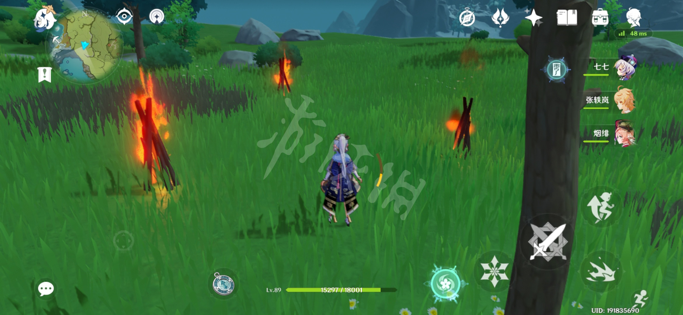 把三个柴火堆点燃即可拿到一精致的宝箱。
