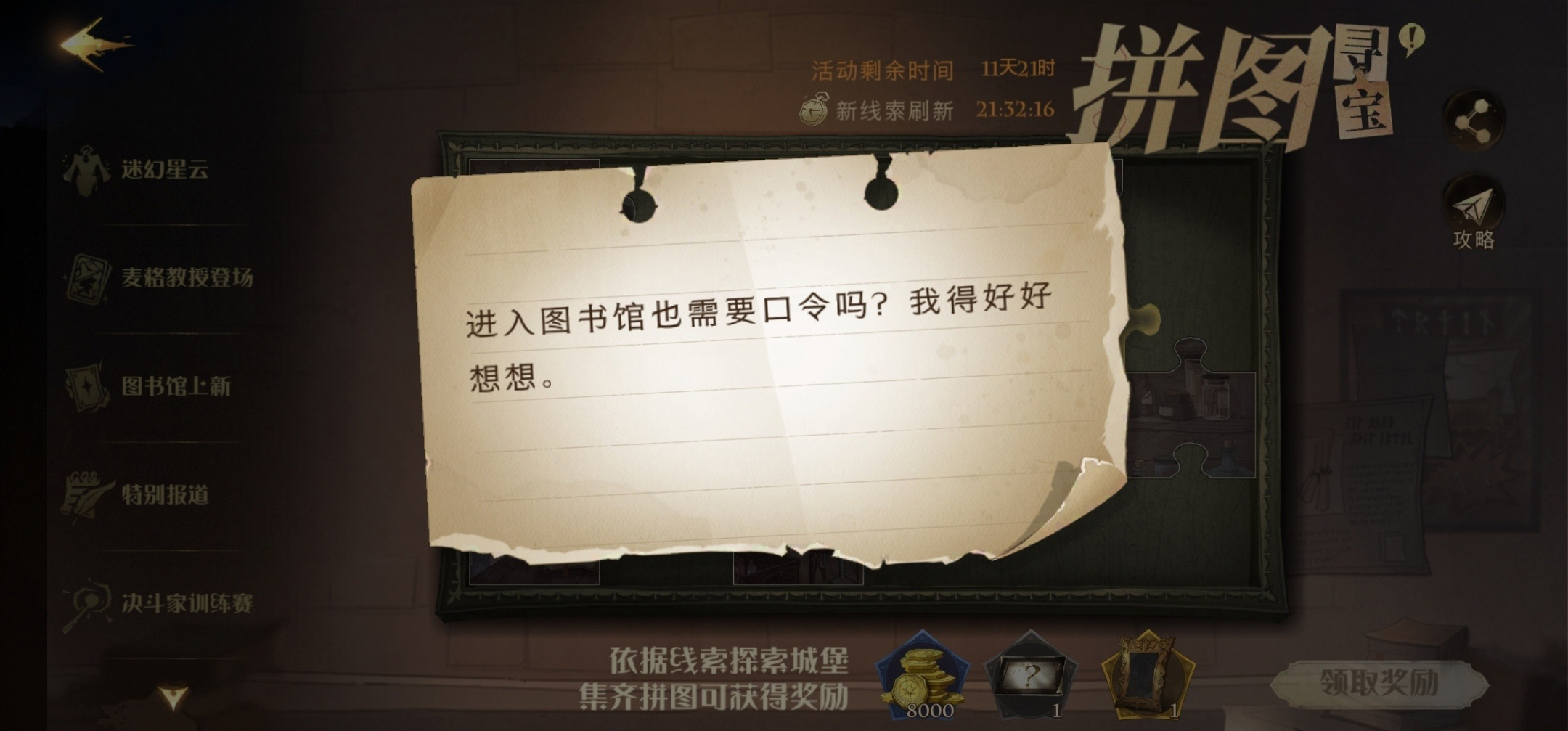 拼图线索:进入图书馆也需要口令吗?我得好好想想。