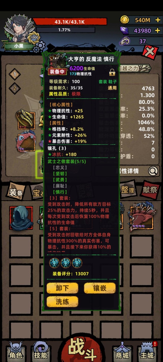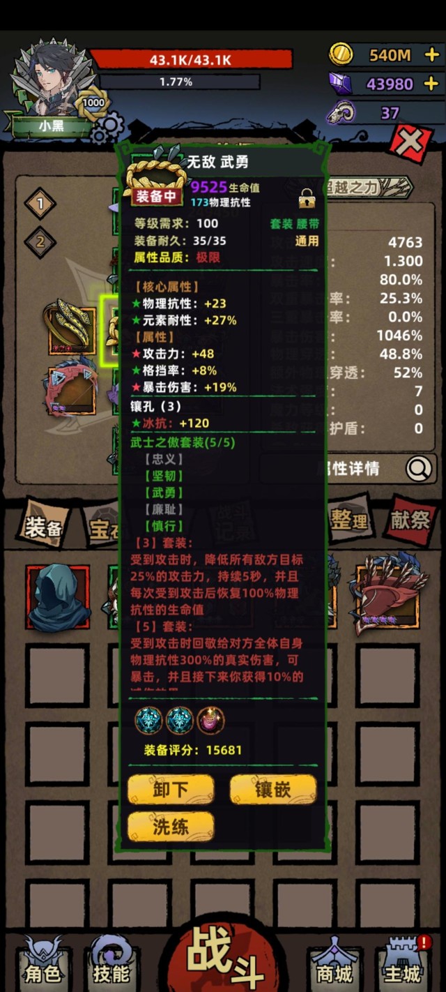 剑圣爬高必备,抗性戒指没卵用,“极大”就100抗性而已,完全没有剑圣好用,缴械高层神技,保命的,被动用二连击,配合触发不死。
