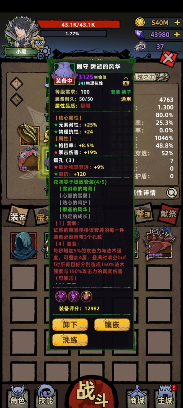 这次更新驭兽直接起飞了。直接挂机到3700,然后手动到了4000。3000层以上都是10s内过图,效率太高了。下面是最新装备搭配