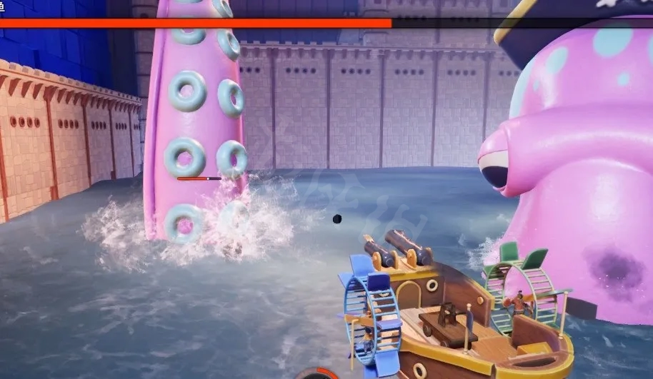 玩家需要瞄准粉色章鱼的触手开炮,没有触手的时候就不断攻击章鱼头部。