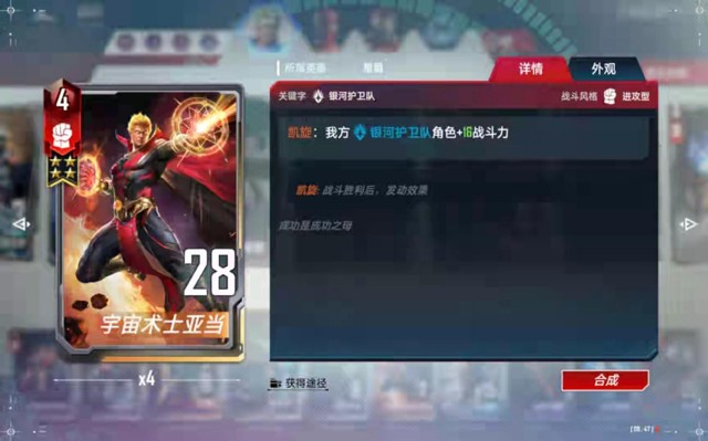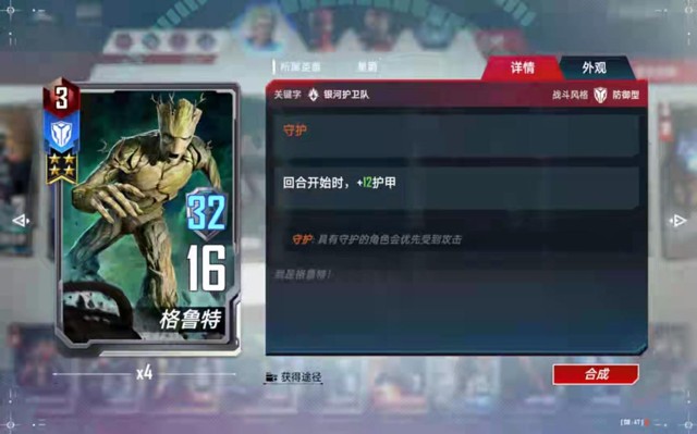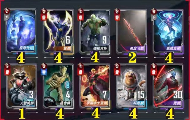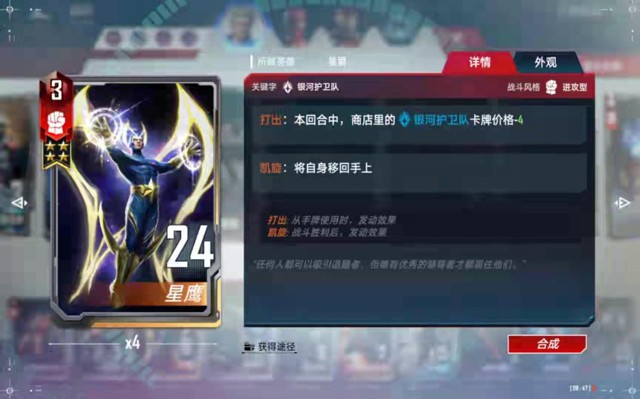 (4)找亚当、德拉克斯、格鲁特、星鹰等关键卡,尽可能升级到高星。记住关键的一点:每回合开始的时候第一时间打出星鹰,然后再买其他随从。