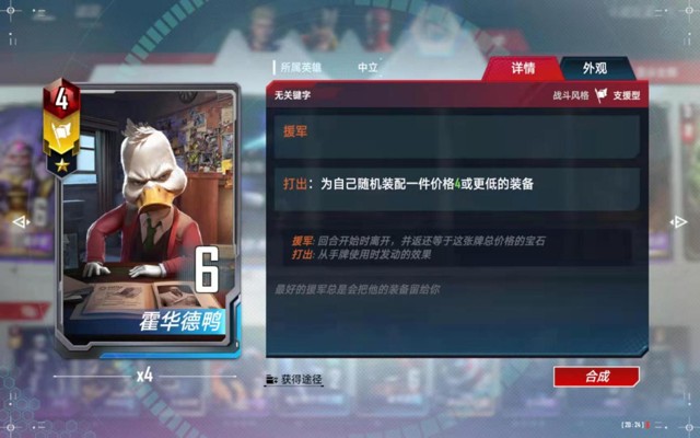 (3)援军角色,中期的时候一定要打出,可以无偿滤牌库,霍华德鸭可以白赚1宝石;