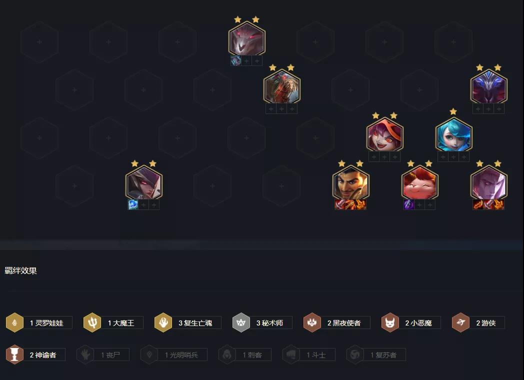 丧光复生大眼阵容这周选择率大大增加,前四与吃鸡双榜第一。在上版本吃分上能与其掰手腕的只有6哨兵体系,这版本哨兵大砍后,现在来看暂无天敌,是这版本吃分最稳的阵容没有之一,非常推荐大家用这套阵容上分。