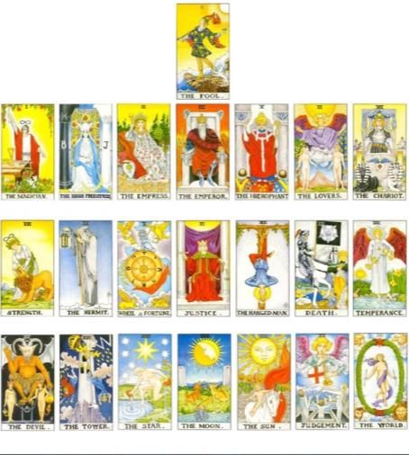 小阿卡那有四种物件,代表不同的元素,在图里能找到,再根据罗马数字找到对应的字母。