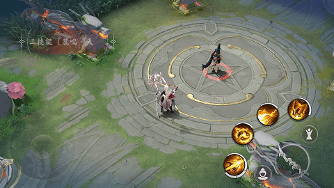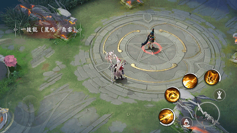 大岳丸朝指定位置释放[麓鸣·天鼓],对目的地的敌人造成持续伤害和减速效果,再次使用该技能可提前召回[天鼓]。