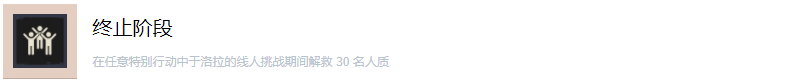 终止阶段是游戏中一个比较麻烦的成就,完成条件为:在任意特别行动中于洛拉的线人挑战期间解救30名人质。