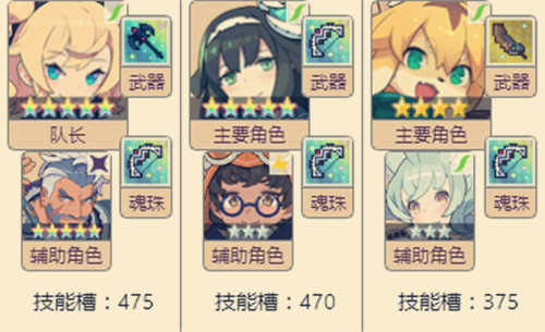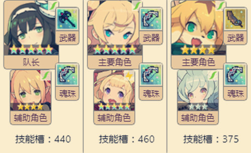 1.首先开荒的初版连击风队,以【剑鬼-希露缇】为核心(队长),主要角色为【风奶-菲莉娅】和四星角色【虎娘-咪娅】,可替换的组件多,一般组合如下图所示。