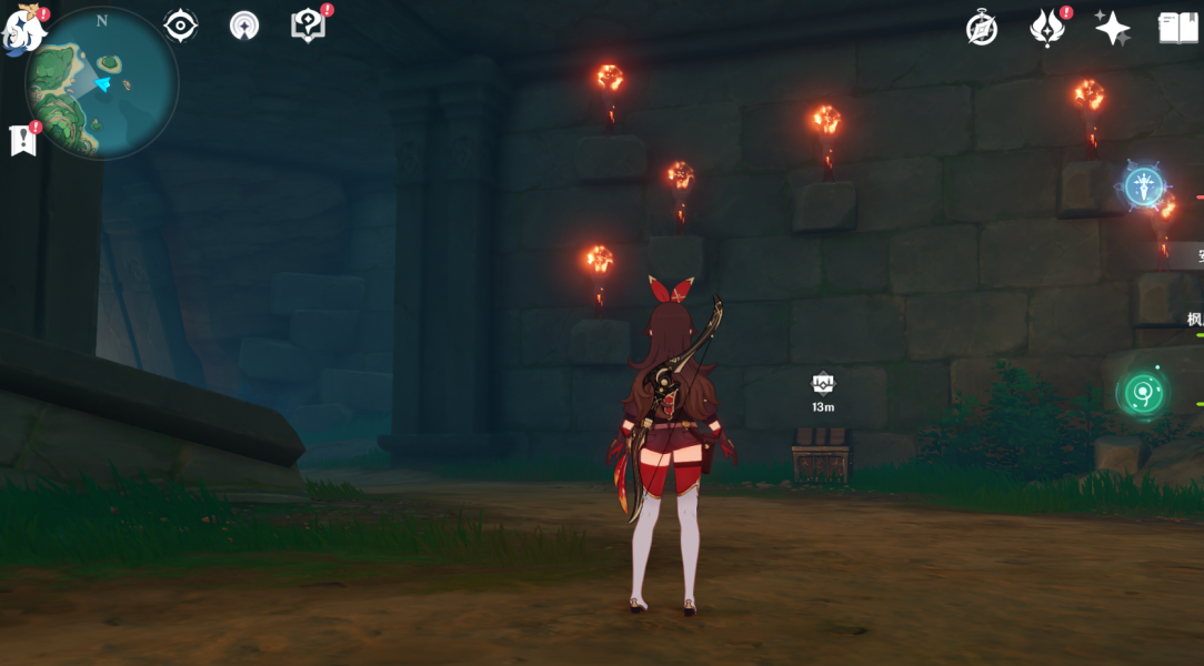 点亮这个视角内左上,左下,右下的火把,拿到一个精致的宝箱
