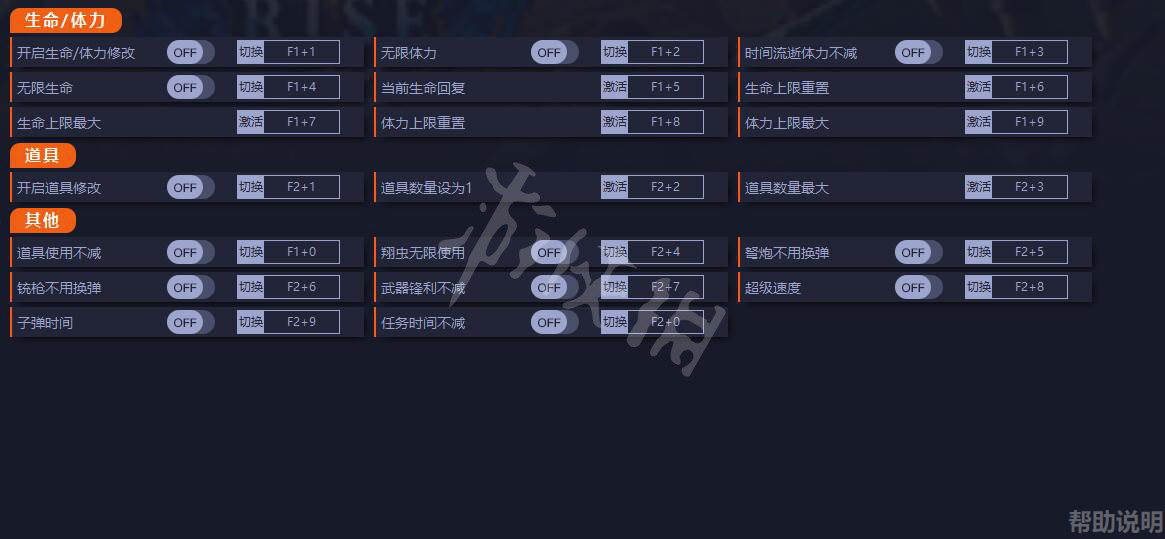 3.开启修改器各主初始项再使用各子修改项[无主初始项则不用开启][主初始项:如开启...修改]。
