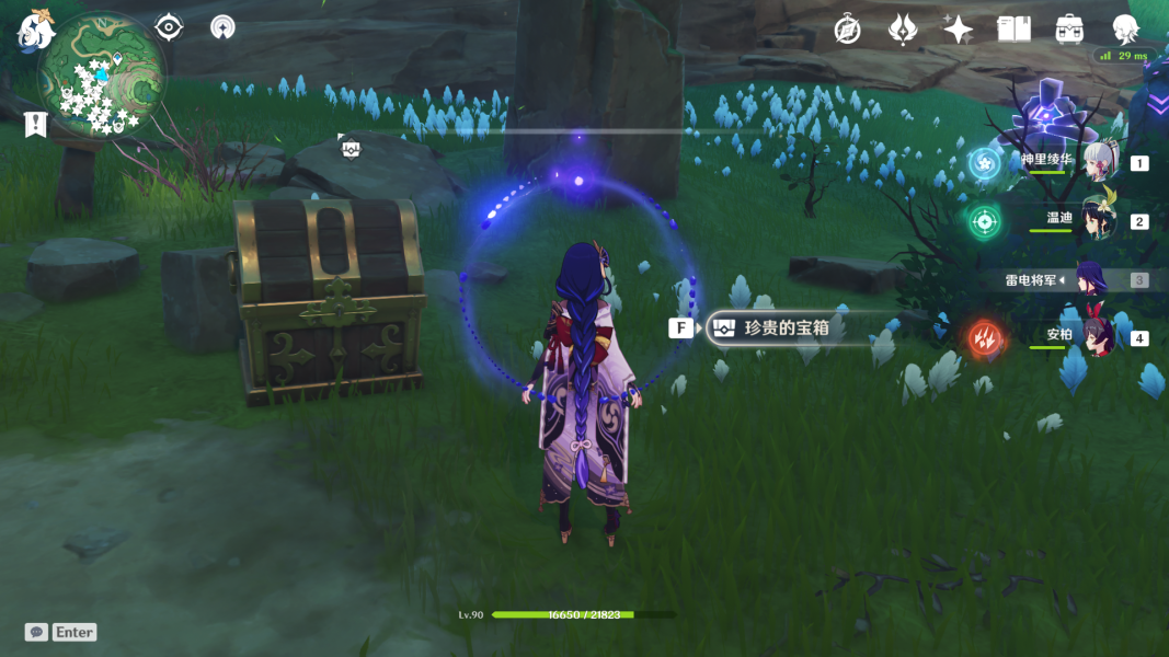 这个雷石是在雷护罩里面的,需要在这个点用羽毛激活雷鸟石像出现的雷种子进入