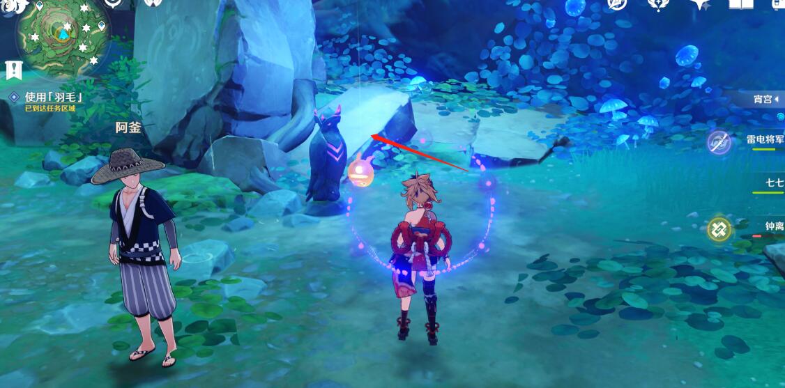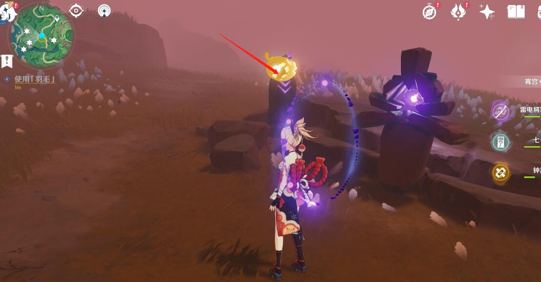 跟着指引走,第一个地方的雷鸟雕像,用羽毛照一下。
