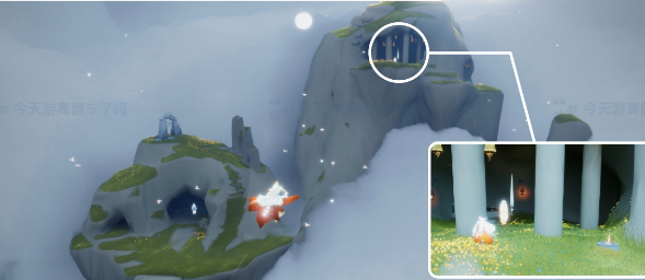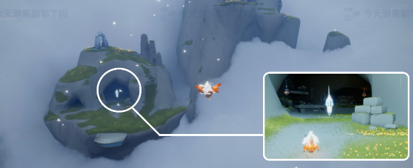 2.首先根据提示拔一根蜡烛,送给岛屿右侧两连在一起岛屿中较高岛屿的先祖,位置如下图: