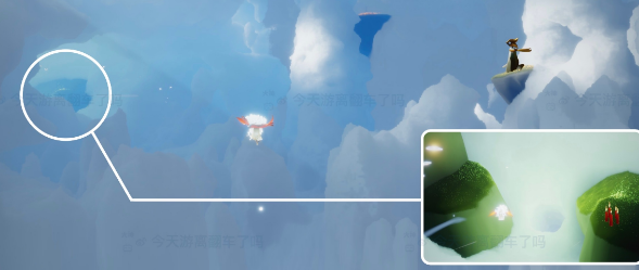 6.任务一完成后主岛屿对面的云道将部分开放,玩家可从云道右边第一个平台路标指向的通道进入雨林隐中隐同时新增一处蜡烛点(见小图标识)。