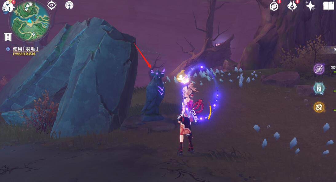 跟着指引走,第一个地方的雷鸟雕像,用羽毛照一下。
