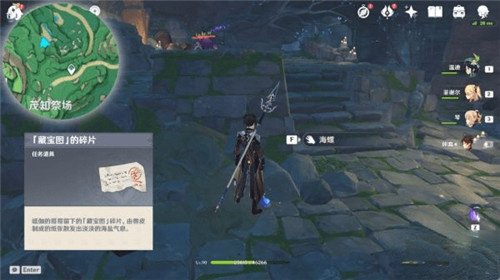 接下来我们来到茂知祭场传送点右上方,在一个罐子的周围可以找到海螺,捡取获得藏宝图碎片。