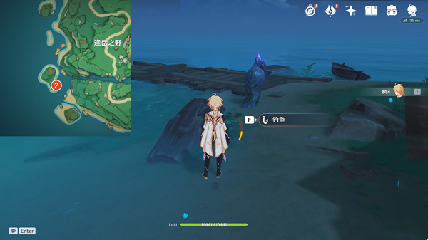 与他交谈之后,我们得到任务,帮他寻回钓鱼所遗失的【护身符】。