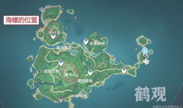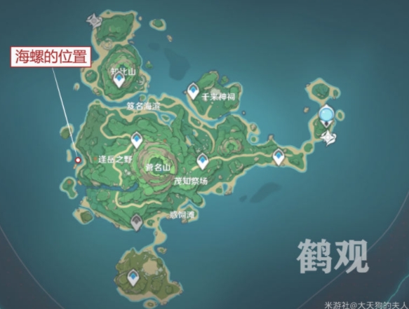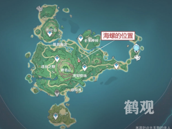 前往鹤观「七天神像」/船锚附近拾取一个蓝色的海螺;