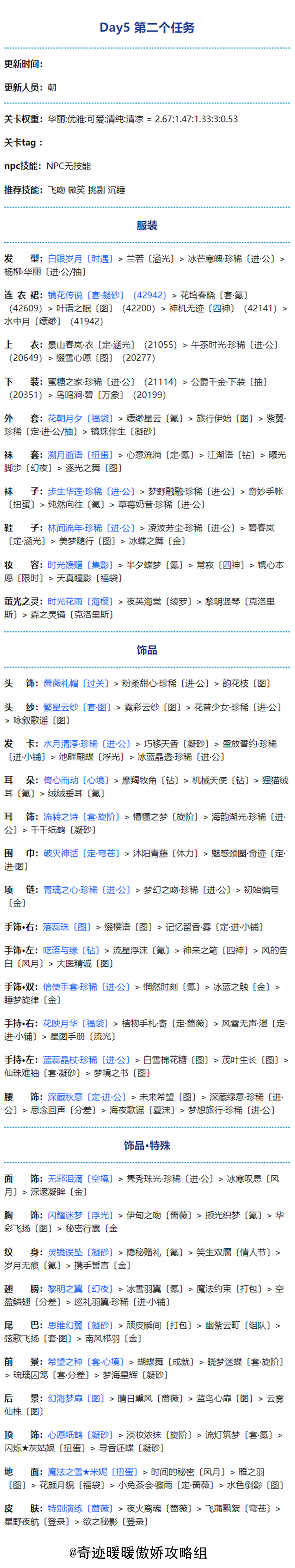1.图中就是奇迹暖暖奇幻指环第二个任务的搭配攻略了,这次的tag是华丽、优雅可爱、青春、清凉