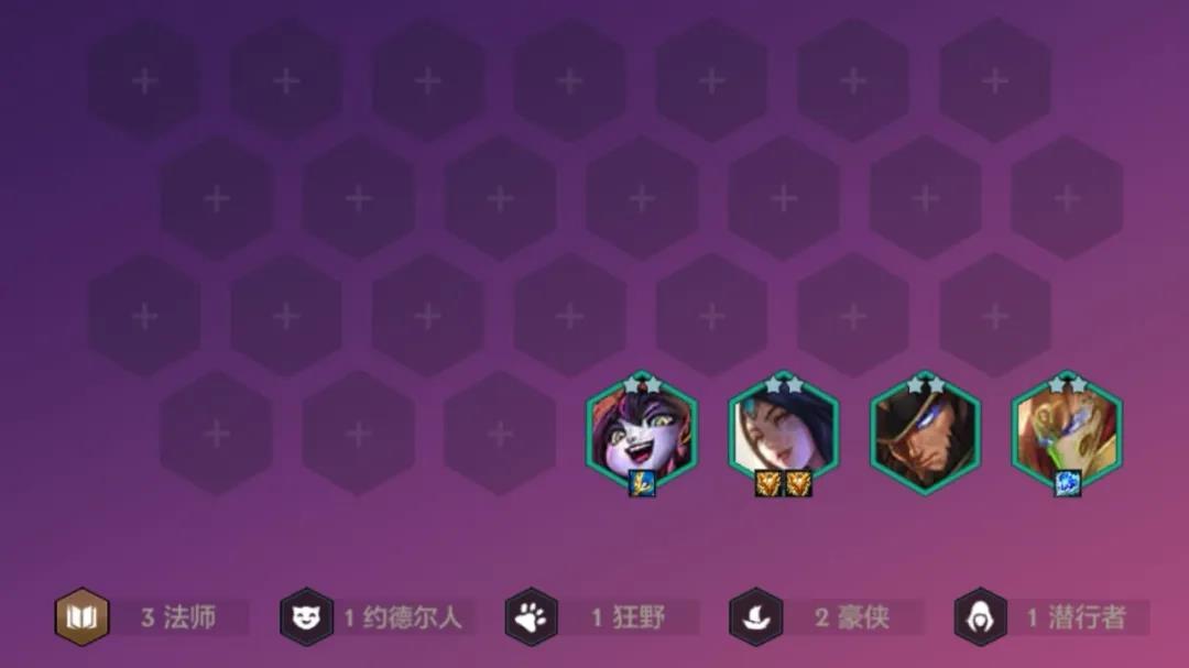 虽然是低人口阵容,不过没有一费卡。前期尽快升人口,2-1升4,最好三法加前排过渡,也可以豪侠开局攒经济,2-4升五随便补齐双羁绊两前排。